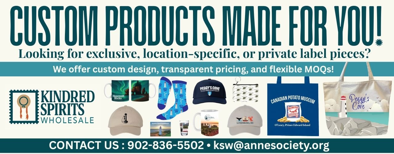 Welcome to Kindred Spirits Wholesale! We specialize in high-quality souvenirs, giftware, and books for the Retail trade in Cape Breton, mainland Nova Scotia, New Brunswick, Prince Edward Island, and Newfoundland. We also carry licensed Anne of Green Gables products.